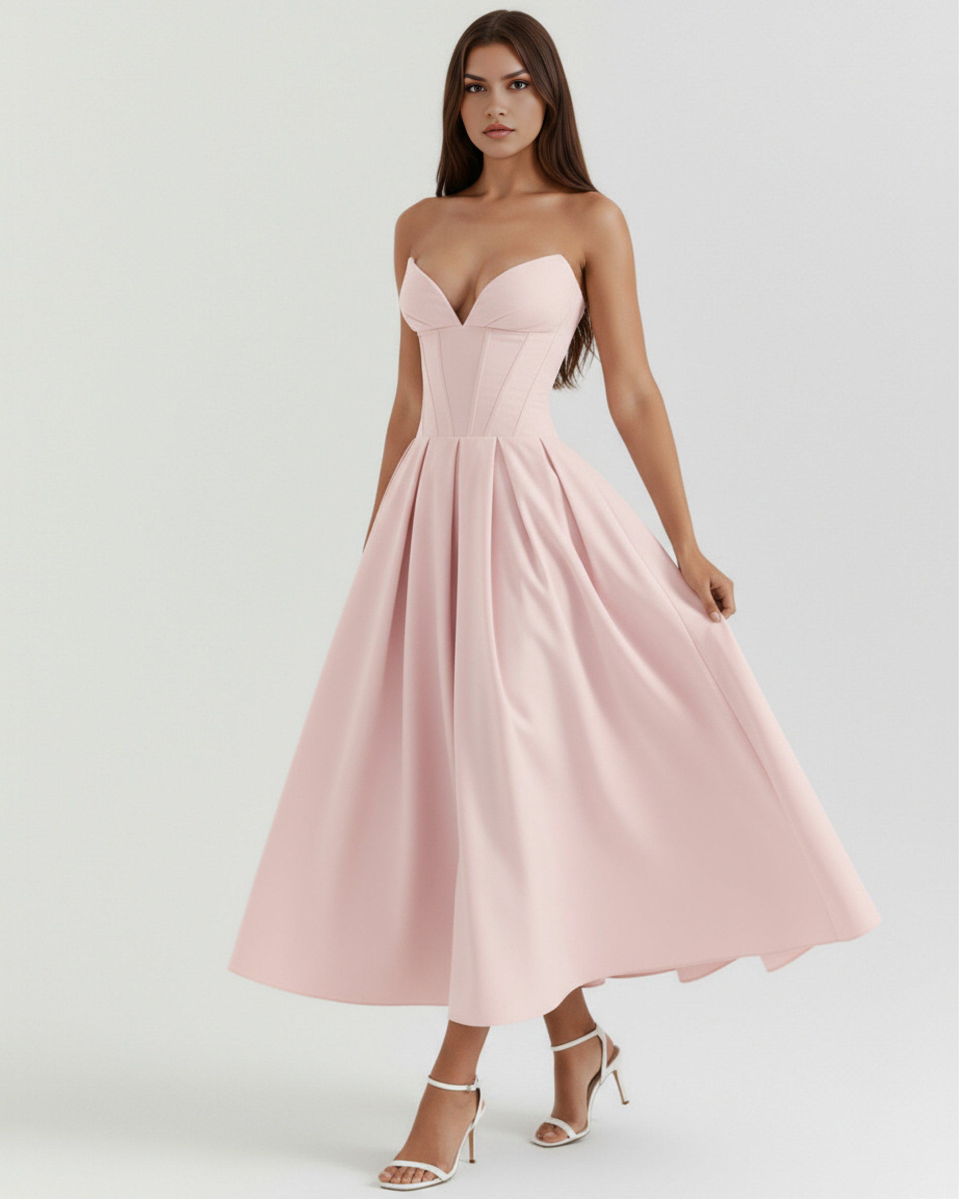Our 'Amalfi' is simply THE dress for your special occasions this season. Feminine, chic, truly an icon. The architectural sculpted bodice is perfectly boned to cinch your waist and contrasted by the full, feminine, voluminous skirt.