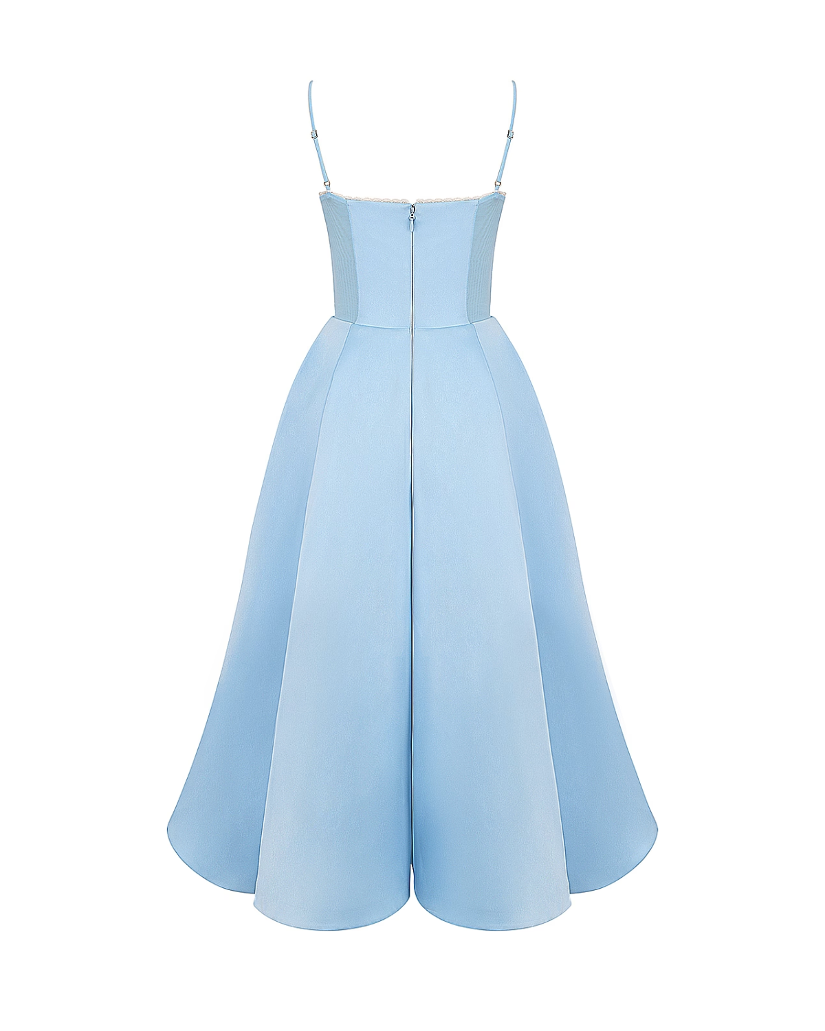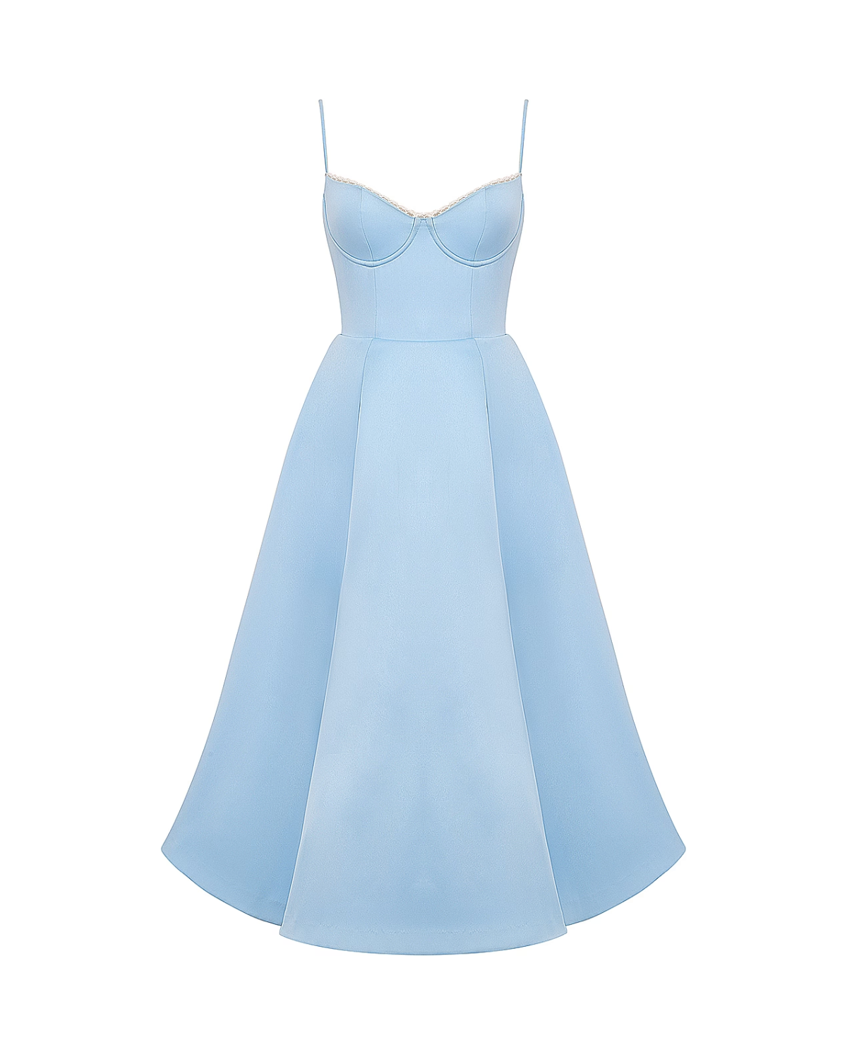 Cut from lustrous fabric with a satin feel and hint of powermesh, our 'Selene' midi dress is what fairytales are made of. The bodice is perfectly boned to cinch your waist and has a pretty sweetheart neckline with underwired cups. The delicate straps adjust for the perfect fit and 'Selene' is all about the floaty midi skirt, fitted with a voluminous layer of the softest tulle for a stunning look that keeps the shape beautifully.