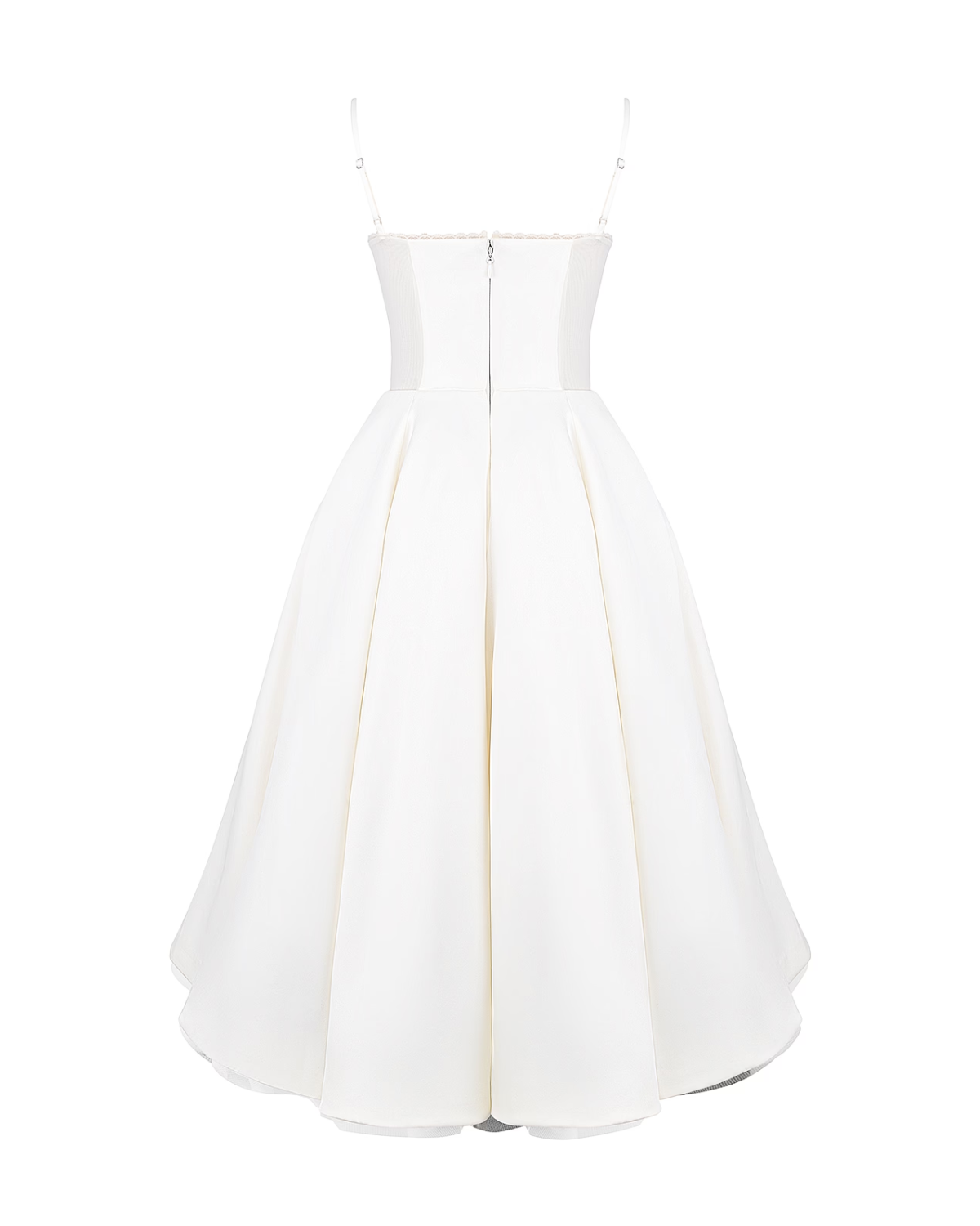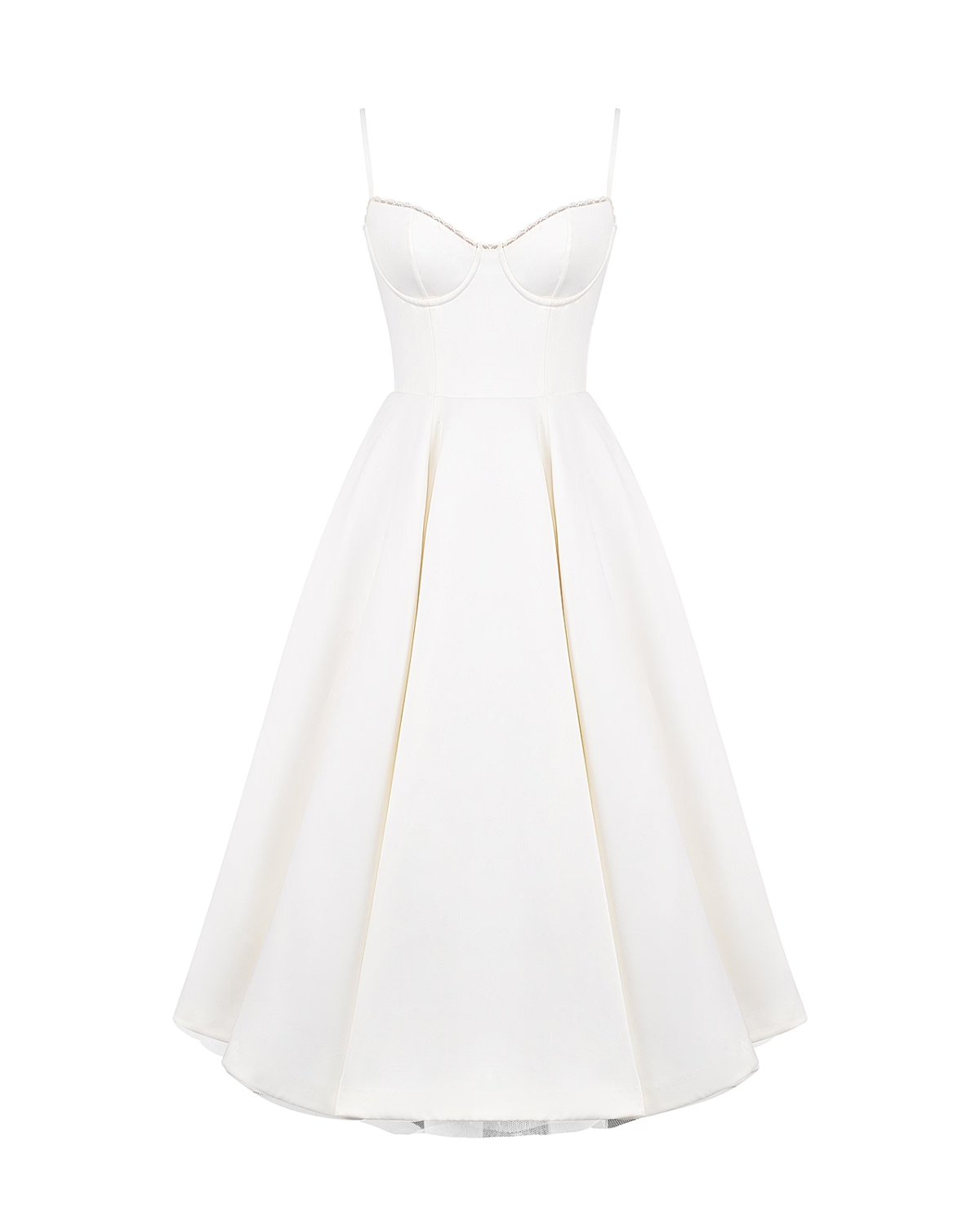 Cut from lustrous fabric with a satin feel and hint of powermesh, our 'Selene' midi dress is what fairytales are made of. The bodice is perfectly boned to cinch your waist and has a pretty sweetheart neckline with underwired cups. The delicate straps adjust for the perfect fit and 'Selene' is all about the floaty midi skirt, fitted with a voluminous layer of the softest tulle for a stunning look that keeps the shape beautifully.